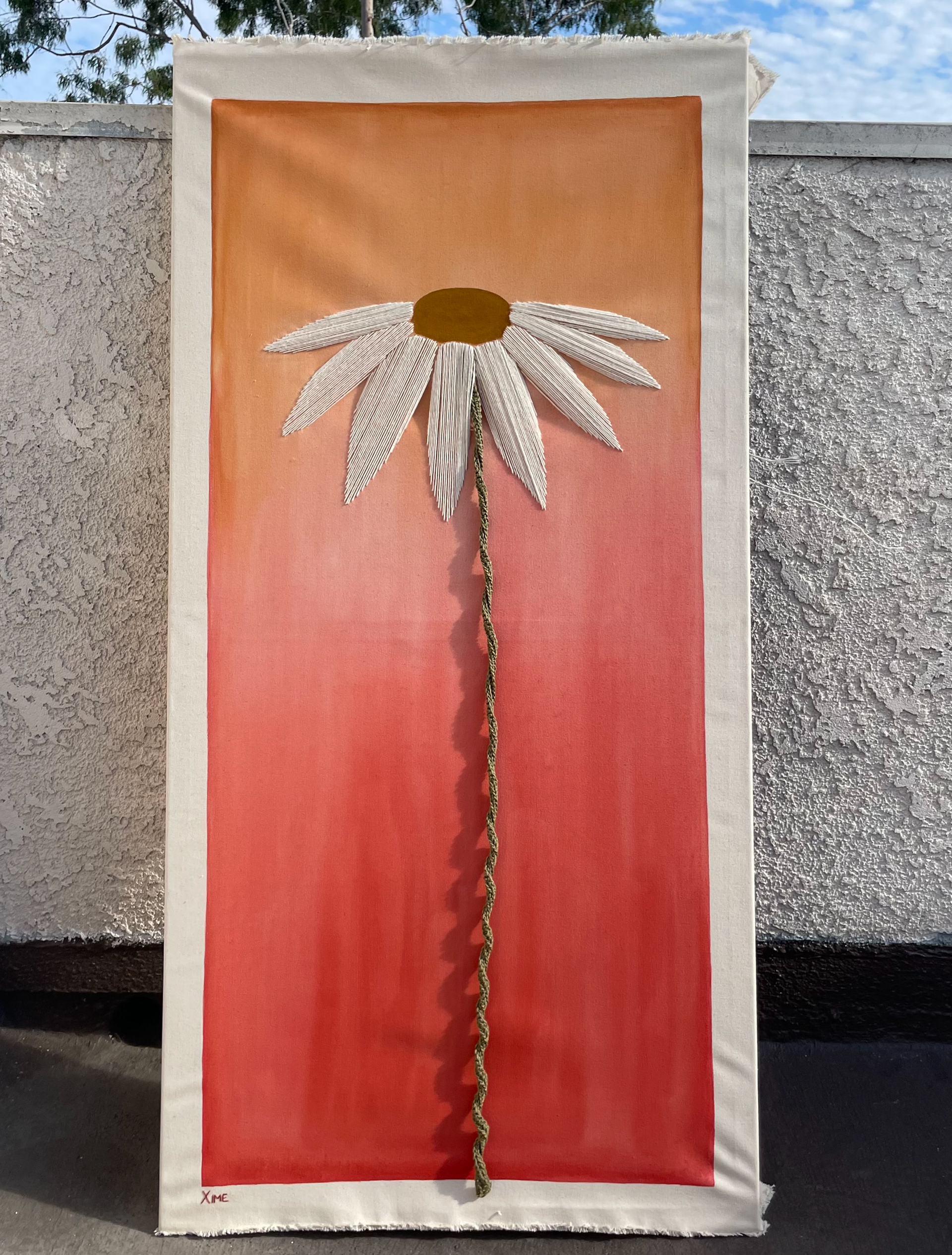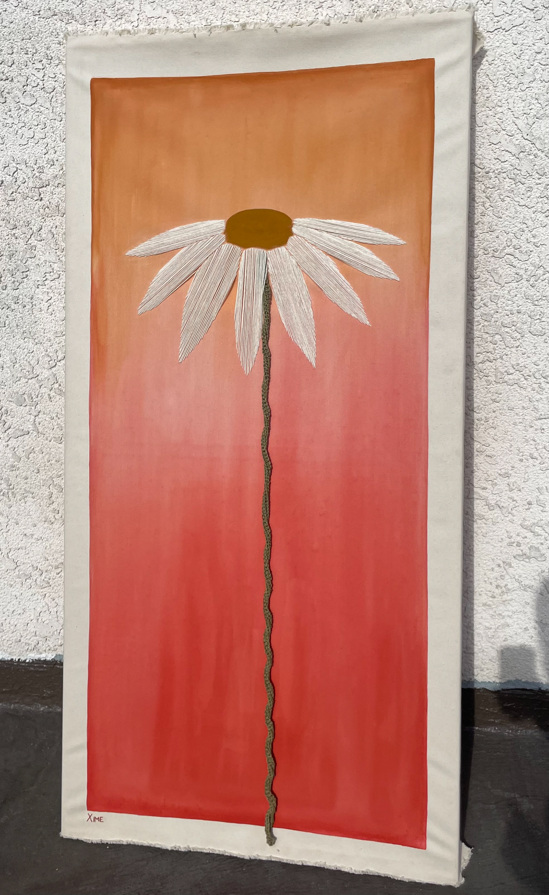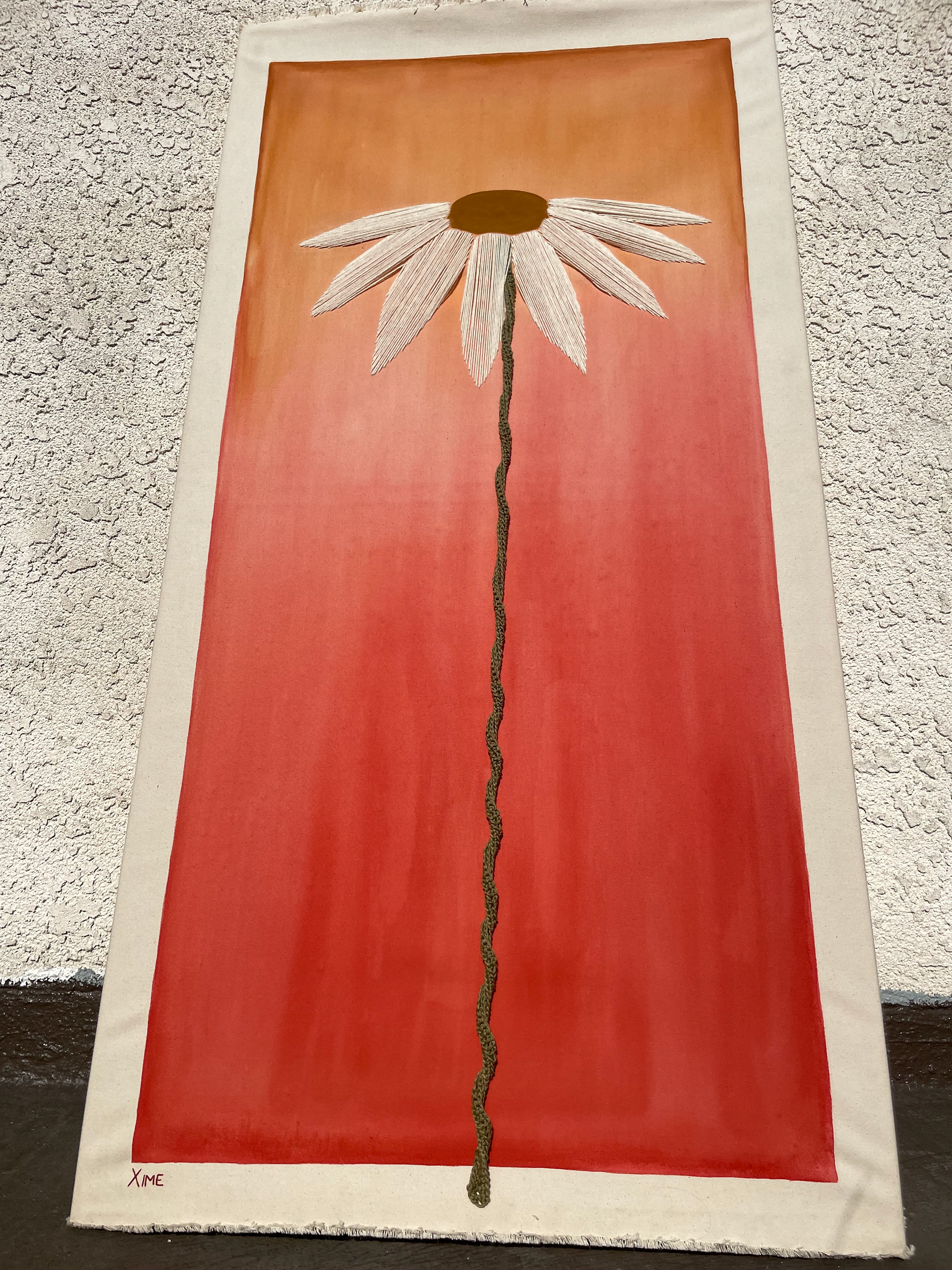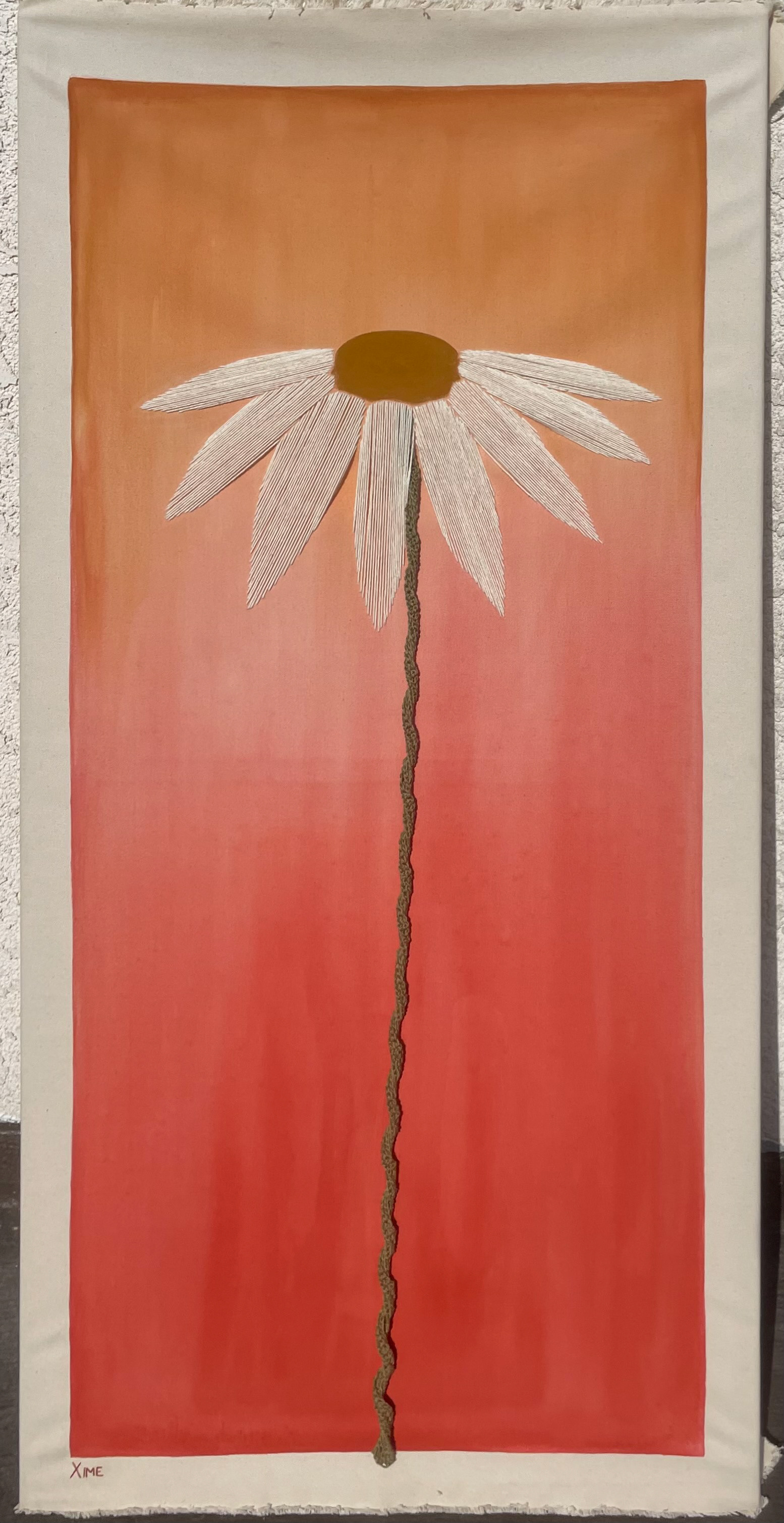 The final result is a personification of innocence: bright colors flowing into one another with no clear sign of where one ends and the other begins, the harp-like playfulness of the petals, the flexible, malleable stem… a painting that invites you to play, to enjoy through sight and touch, like a kid discovering the world.