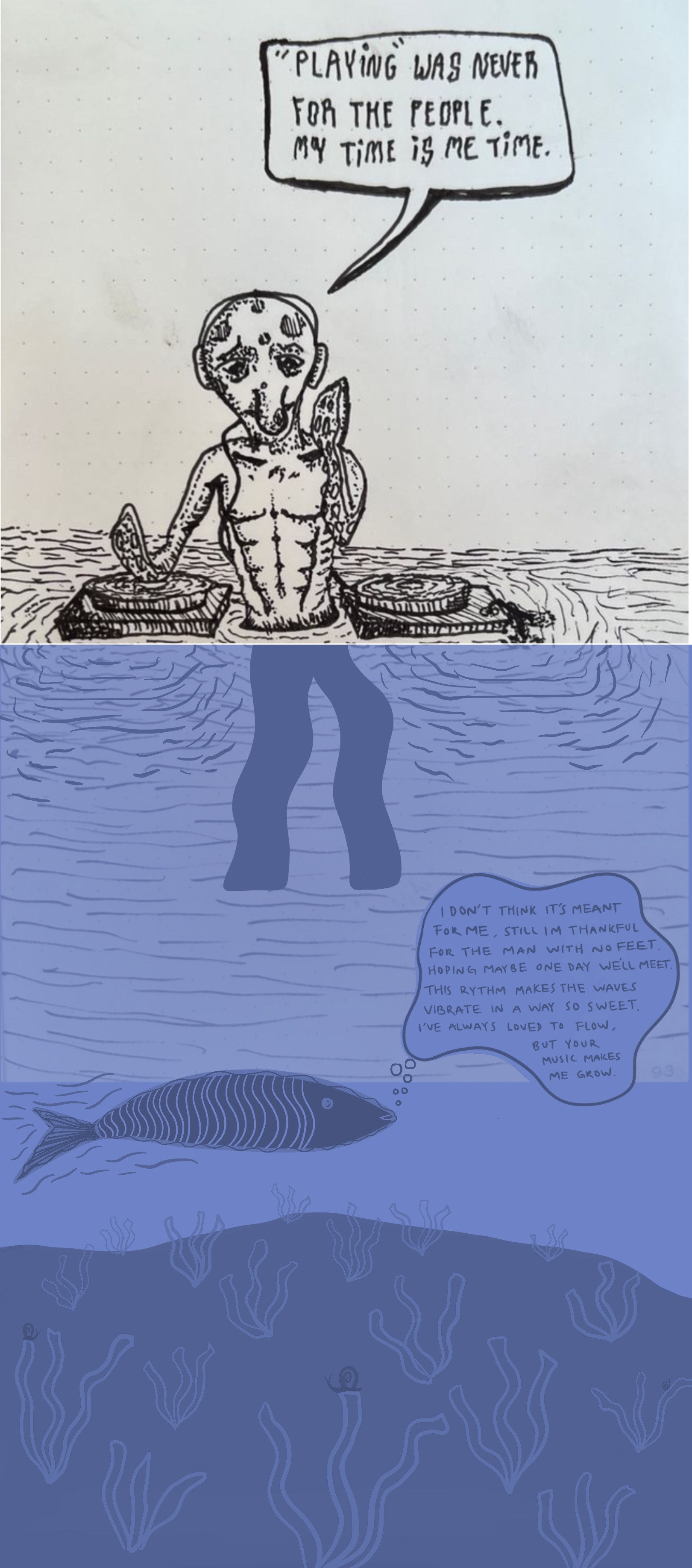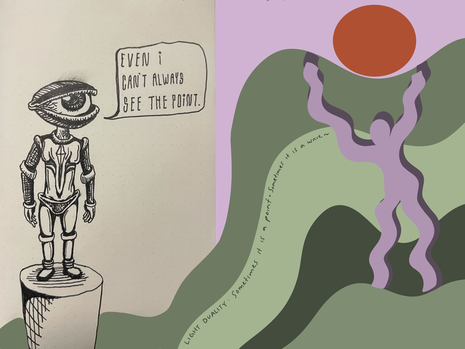 While backpacking around southeast Asia in 2023 I met some incredible people; one of which is @darkcontraster. We stayed in contact through social media and collaborated three times. He would send me a doodle he made in his sketchbook and I would create my digital doodle to blend in with his sketch. I love collaborating with artists, they inspire me to go outside of my comfort zone and experiment with new styles and techniques.